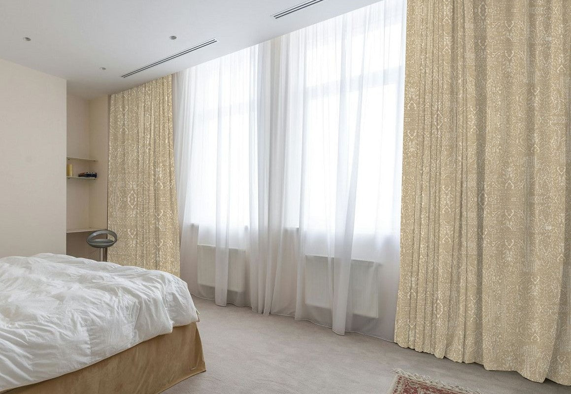 Curtain fullness refers to the relationship between the ordering width and the amount of fabric used in your curtains. The ordering width is the measurement of the area you want to cover, usually the width of your curtain rod (between the finials) or track. Fullness is a key aspect of curtain design, as it determines how the fabric will drape and gather when hung. Different heading styles require different fullness ratios, since some styles naturally use more fabric to achieve their intended look.