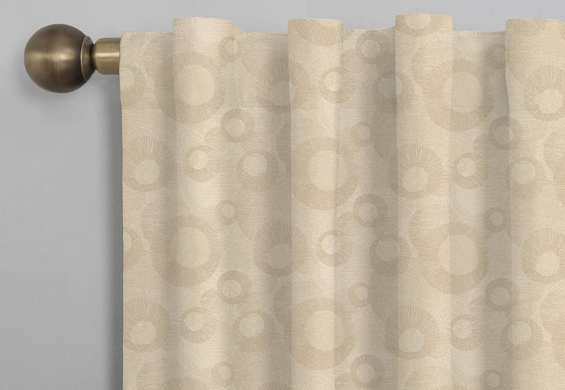 Elevate your interior style with Linen Abstract Circular Jacquard Blackout Back Tab Draperies. Crafted from a premium 15% linen and 85% polyester blend, these draperies combine the soft, textured sophistication of linen with the durability, wrinkle resistance, and easy-care benefits of polyester. The abstract circular jacquard pattern adds a modern artistic flair, perfect for bedrooms, living rooms, or formal spaces. Designed with back tab headers, these draperies are easy to hang and create smooth, elegant folds. Featuring a blackout lining, they provide excellent light control, privacy, and energy efficiency, seamlessly merging functional performance with contemporary luxury for stylish, polished interiors.