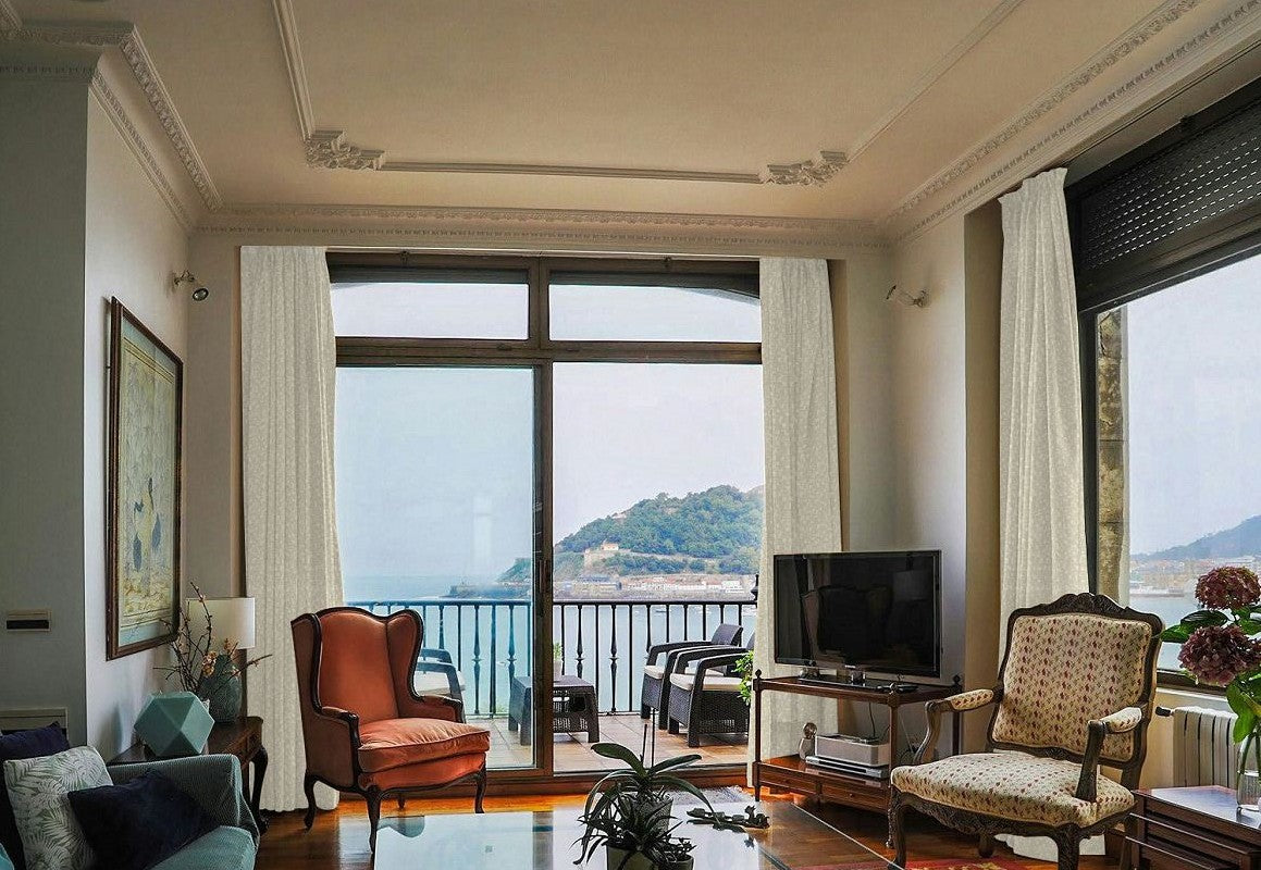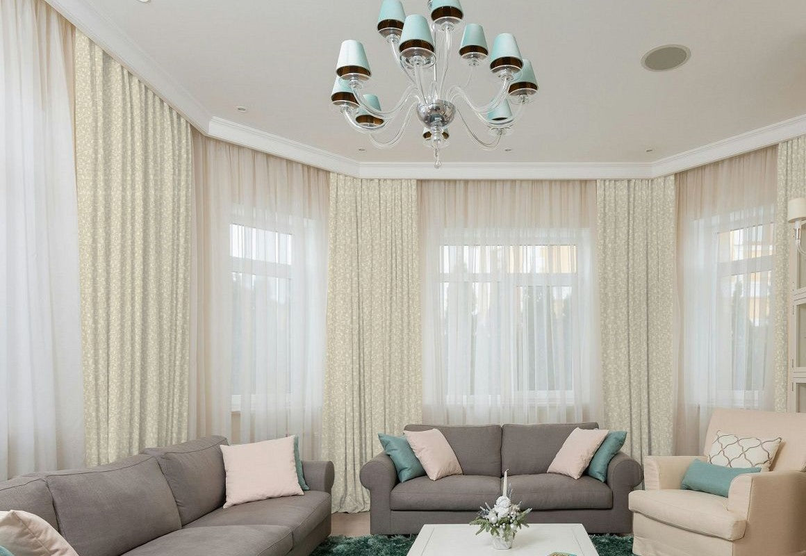 Curtain fullness refers to the relationship between the ordering width and the amount of fabric used in your curtains. The ordering width is the measurement of the area you want to cover, usually the width of your curtain rod (between the finials) or track. Fullness is a key aspect of curtain design, as it determines how the fabric will drape and gather when hung. Different heading styles require different fullness ratios, since some styles naturally use more fabric to achieve their intended look.