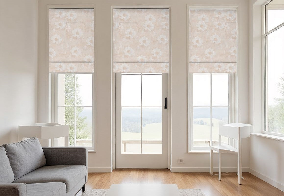 Elevate your windows with our modern minimalist flower-printed chenille blackout Roman shades, where understated elegance meets practical function. Crafted from soft chenille fabric with a refined floral print, these shades add subtle charm and texture to your living space without overwhelming the décor. The blackout lining ensures effective light control, enhanced privacy, and energy efficiency, making them perfect for bedrooms, studies, and living areas. With their clean Roman folds and minimalist design, they bring a balance of modern simplicity and timeless beauty. Durable, stylish, and versatile, they transform any interior into a cozy, inviting retreat.