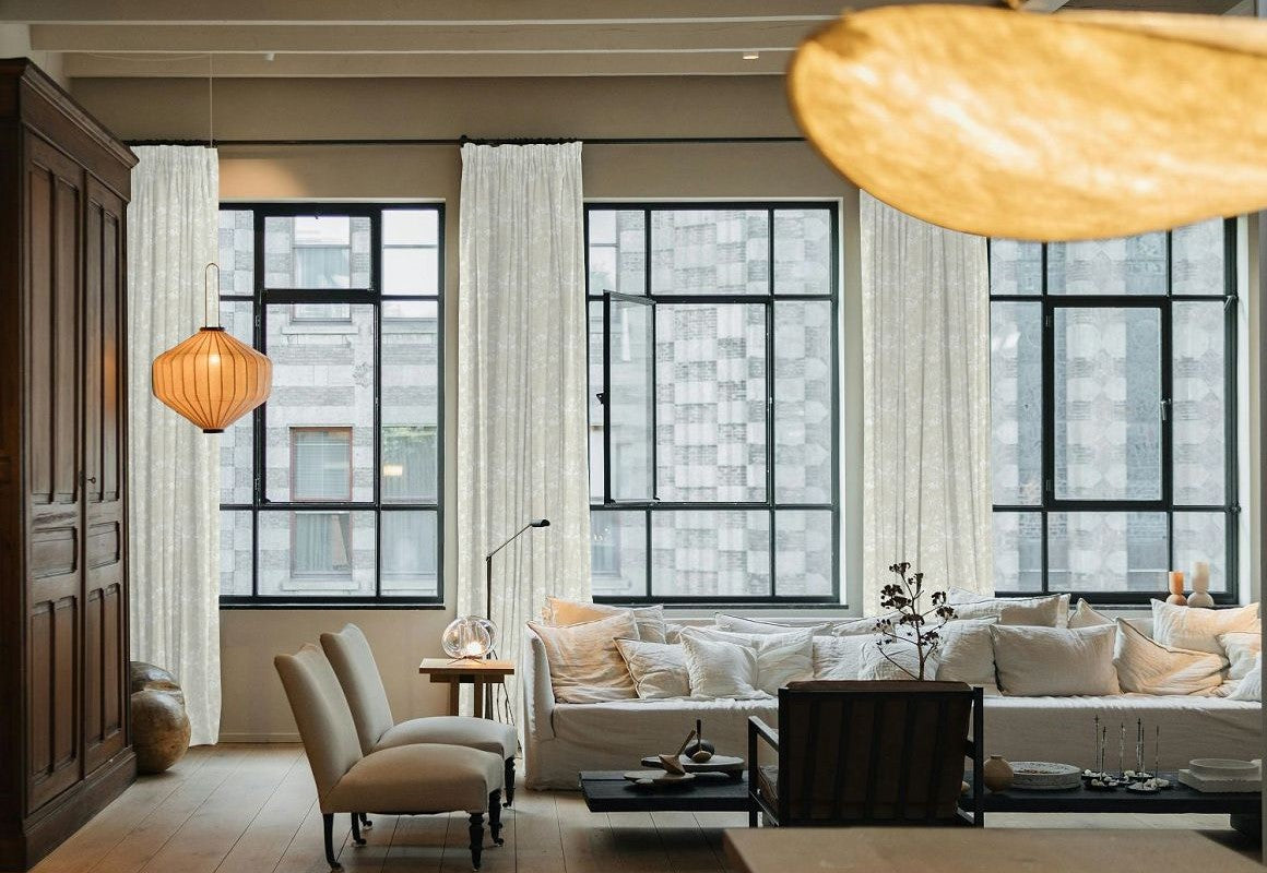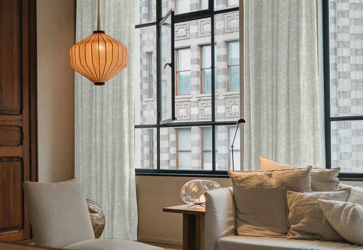 Light passing through translucent fabrics, known as 'backlighting,' can subtly change the color and highlight the texture of the material. Please be aware that the swatches shown on our website do not capture this backlighting effect. To fully understand how backlighting will affect the color and texture of a particular fabric in your home, we suggest ordering swatches from us. This will allow you to see the effect in your own space under natural lighting.