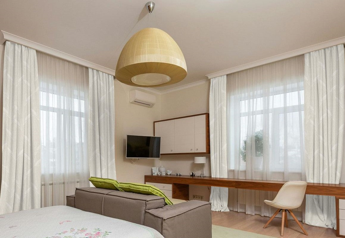 Curtain fullness refers to the relationship between the ordering width and the amount of fabric used in your curtains. The ordering width is the measurement of the area you want to cover, usually the width of your curtain rod (between the finials) or track. Fullness is a key aspect of curtain design, as it determines how the fabric will drape and gather when hung. Different heading styles require different fullness ratios, since some styles naturally use more fabric to achieve their intended look.