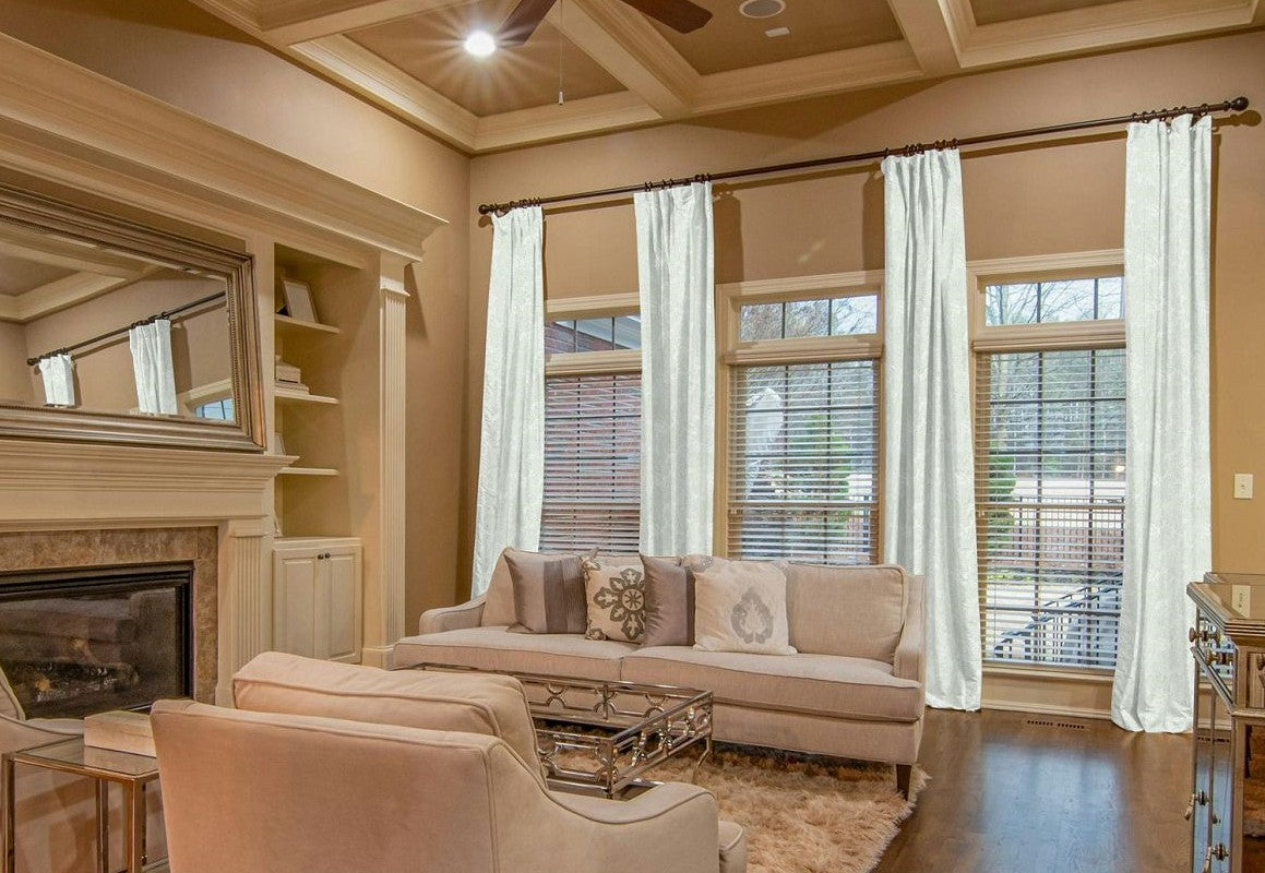 Curtain fullness refers to the relationship between the ordering width and the amount of fabric used in your curtains. The ordering width is the measurement of the area you want to cover, usually the width of your curtain rod (between the finials) or track. Fullness is a key aspect of curtain design, as it determines how the fabric will drape and gather when hung. Different heading styles require different fullness ratios, since some styles naturally use more fabric to achieve their intended look.