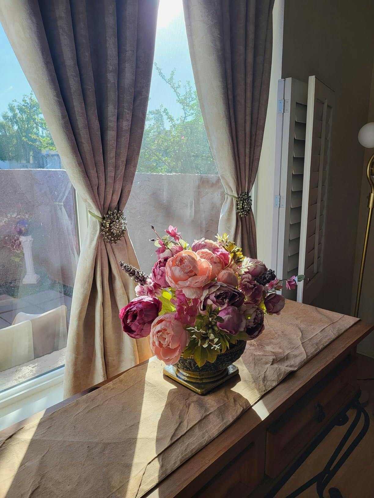 Light passing through translucent fabrics, known as 'backlighting,' can subtly change the color and highlight the texture of the material. Please be aware that the swatches shown on our website do not capture this backlighting effect. To fully understand how backlighting will affect the color and texture of a particular fabric in your home, we suggest ordering swatches from us. This will allow you to see the effect in your own space under natural lighting.