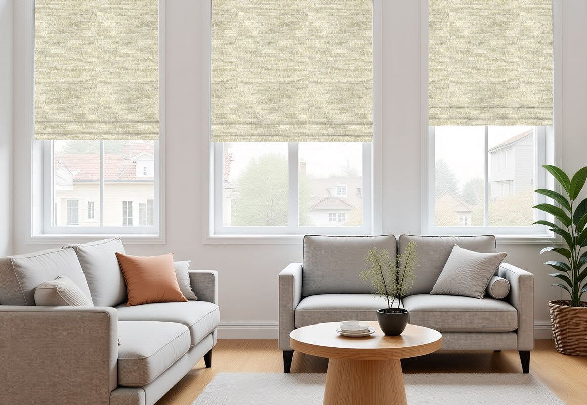 Add modern elegance and natural texture to your windows with our Linen Modern Minimalist Burlap-look Blackout Roman Shades. Crafted from a premium blend of 15% linen and 85% polyester, these shades feature a subtle burlap-inspired weave that enhances any interior with warmth and sophistication. The blackout lining provides superior light control, privacy, and energy efficiency for year-round comfort. Designed in a Roman style, the shades fold neatly when raised and drape gracefully when lowered, offering a tailored and clean appearance. Perfect for bedrooms, living rooms, or offices seeking a combination of minimalist design and functional performance.