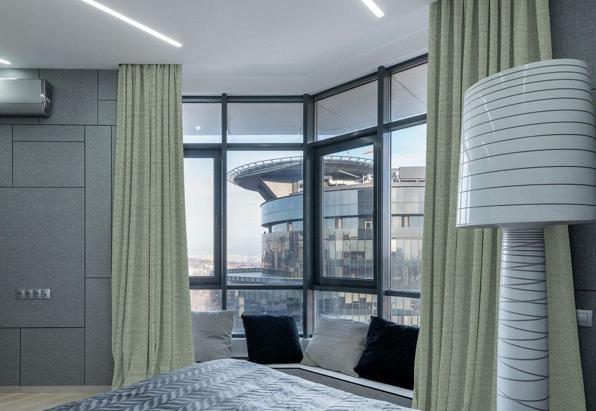 Curtain fullness refers to the relationship between the ordering width and the amount of fabric used in your curtains. The ordering width is the measurement of the area you want to cover, usually the width of your curtain rod (between the finials) or track. Fullness is a key aspect of curtain design, as it determines how the fabric will drape and gather when hung. Different heading styles require different fullness ratios, since some styles naturally use more fabric to achieve their intended look.