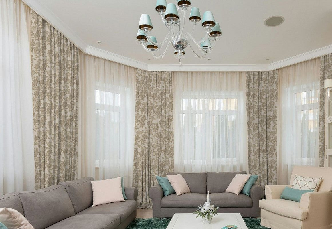 Curtain fullness refers to the relationship between the ordering width and the amount of fabric used in your curtains. The ordering width is the measurement of the area you want to cover, usually the width of your curtain rod (between the finials) or track. Fullness is a key aspect of curtain design, as it determines how the fabric will drape and gather when hung. Different heading styles require different fullness ratios, since some styles naturally use more fabric to achieve their intended look.
