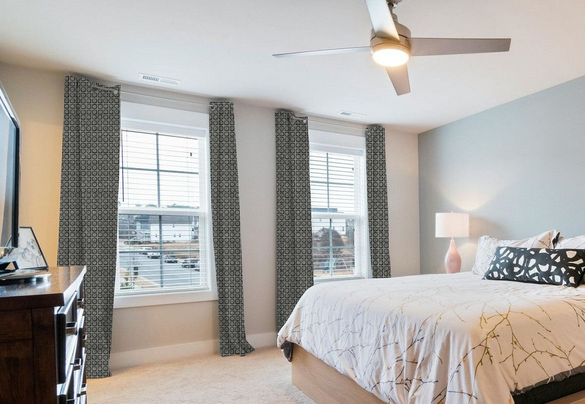 Curtain fullness refers to the relationship between the ordering width and the amount of fabric used in your curtains. The ordering width is the measurement of the area you want to cover, usually the width of your curtain rod (between the finials) or track. Fullness is a key aspect of curtain design, as it determines how the fabric will drape and gather when hung. Different heading styles require different fullness ratios, since some styles naturally use more fabric to achieve their intended look.