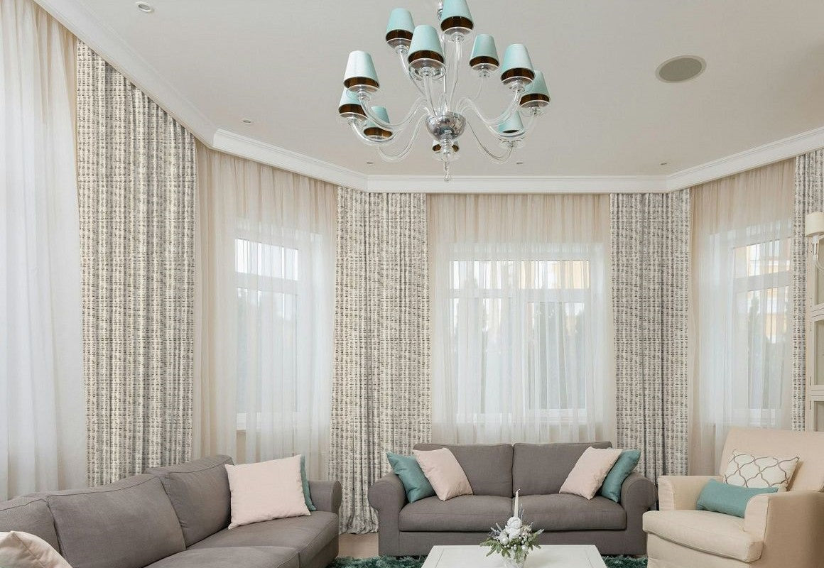 Curtain fullness refers to the relationship between the ordering width and the amount of fabric used in your curtains. The ordering width is the measurement of the area you want to cover, usually the width of your curtain rod (between the finials) or track. Fullness is a key aspect of curtain design, as it determines how the fabric will drape and gather when hung. Different heading styles require different fullness ratios, since some styles naturally use more fabric to achieve their intended look.